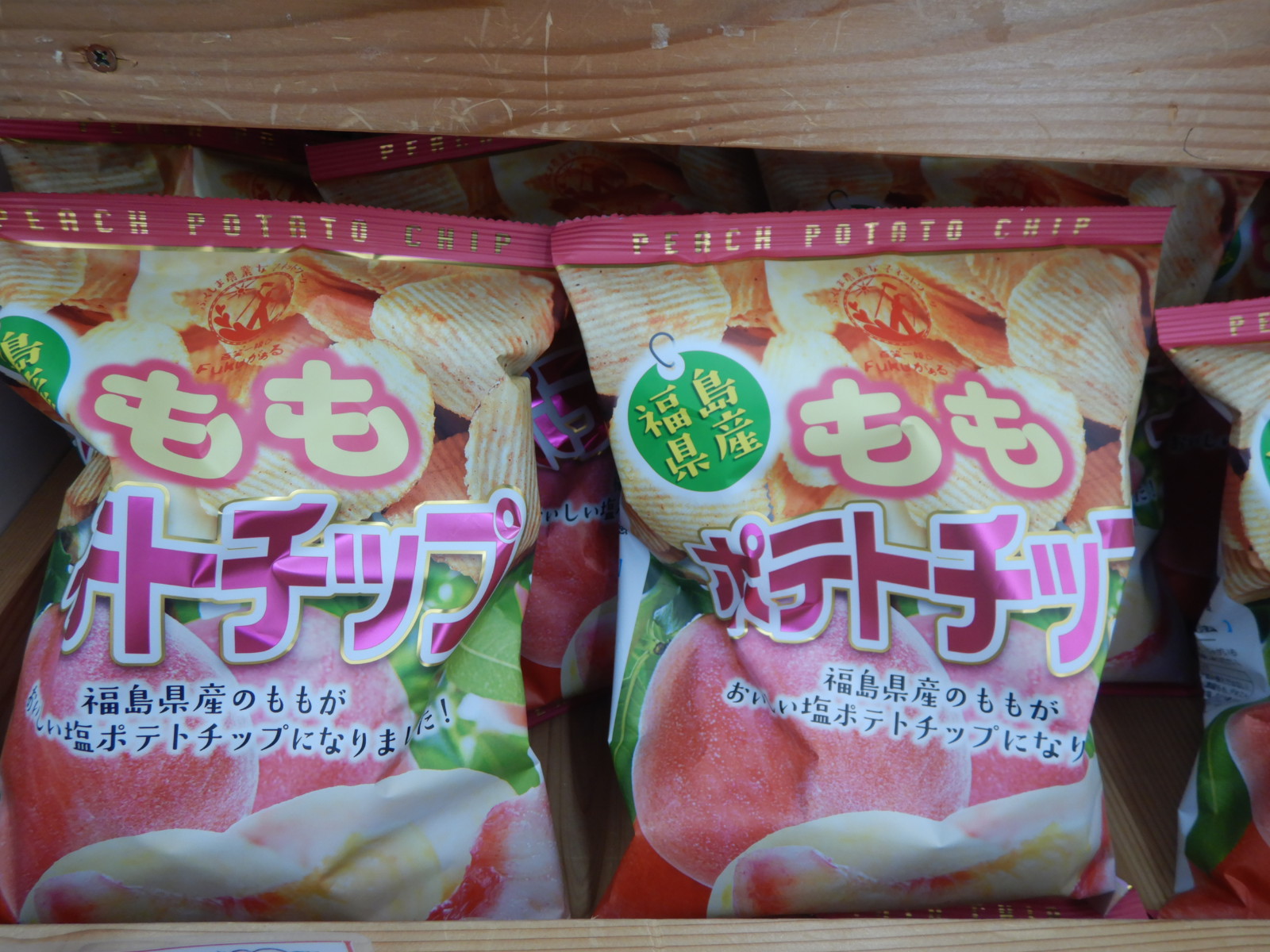 知ってはいましたが実際見るのは初めてのもも味のポテトチップスです。