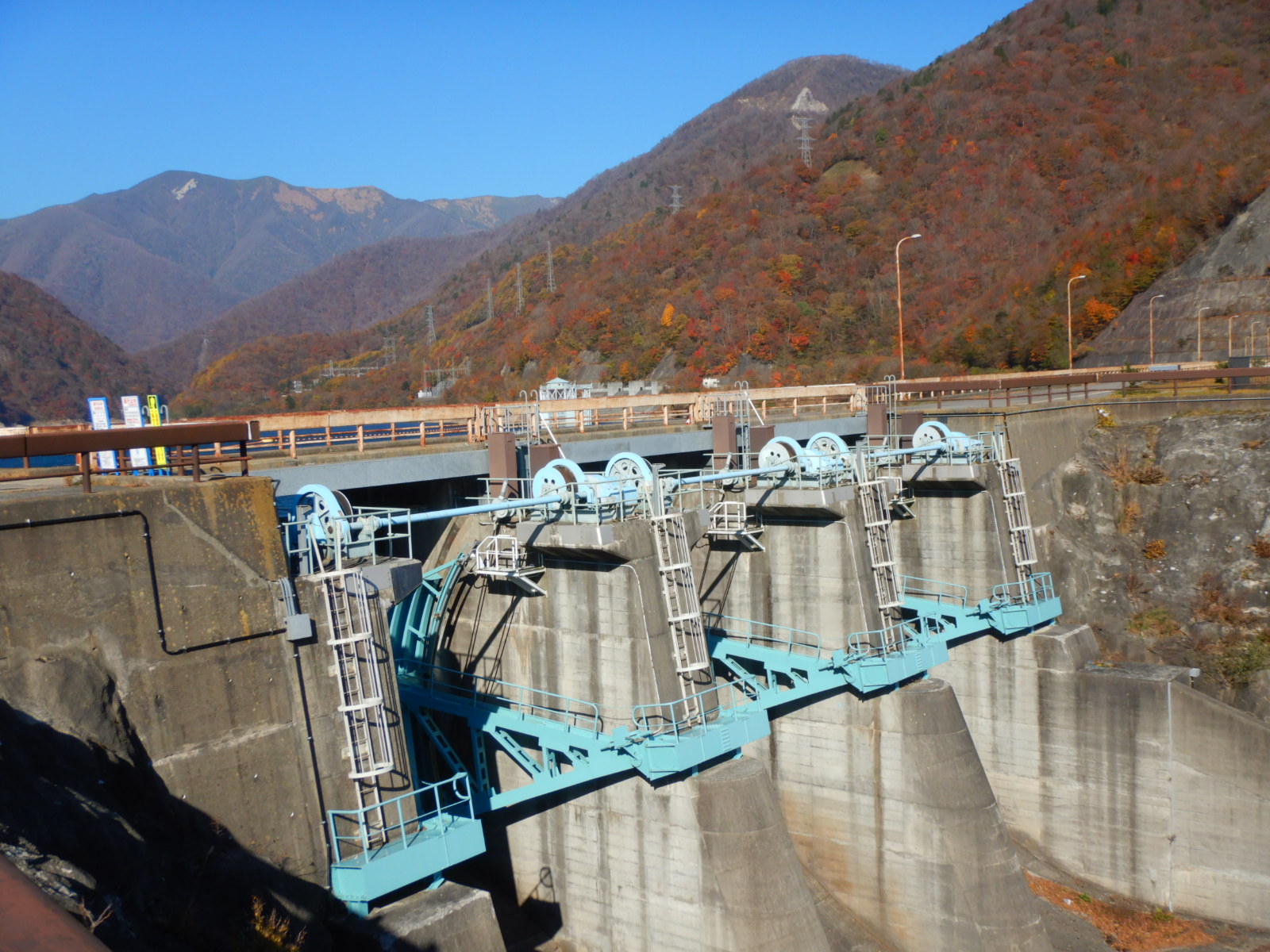 ここだけを見ればたいした高さはないと思えますが、ずっと右下の方までダムの傾斜は落ちています。