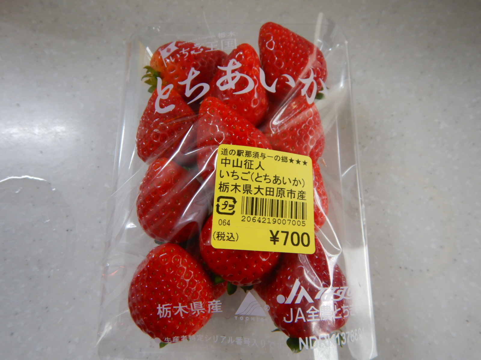 農産品コーナーの入り口付近にあるのは栃木のイチゴ、最近は「とちおとめ」から、酸味が少なく甘みがより感じられる「とちあいか」が主力に変わりました。
