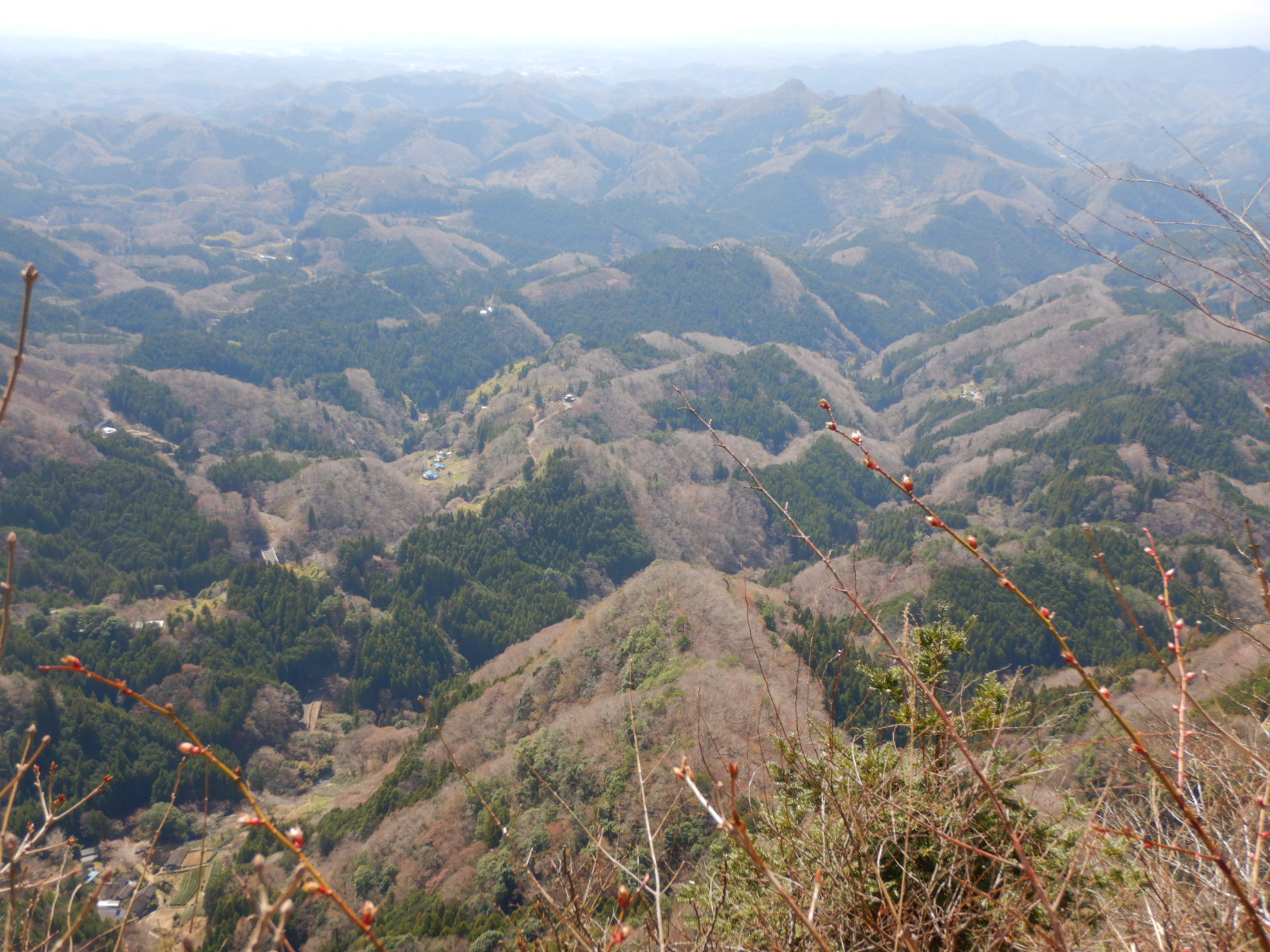 眼下には所々に民家が見えて奥久慈の山村の風景が広がります。