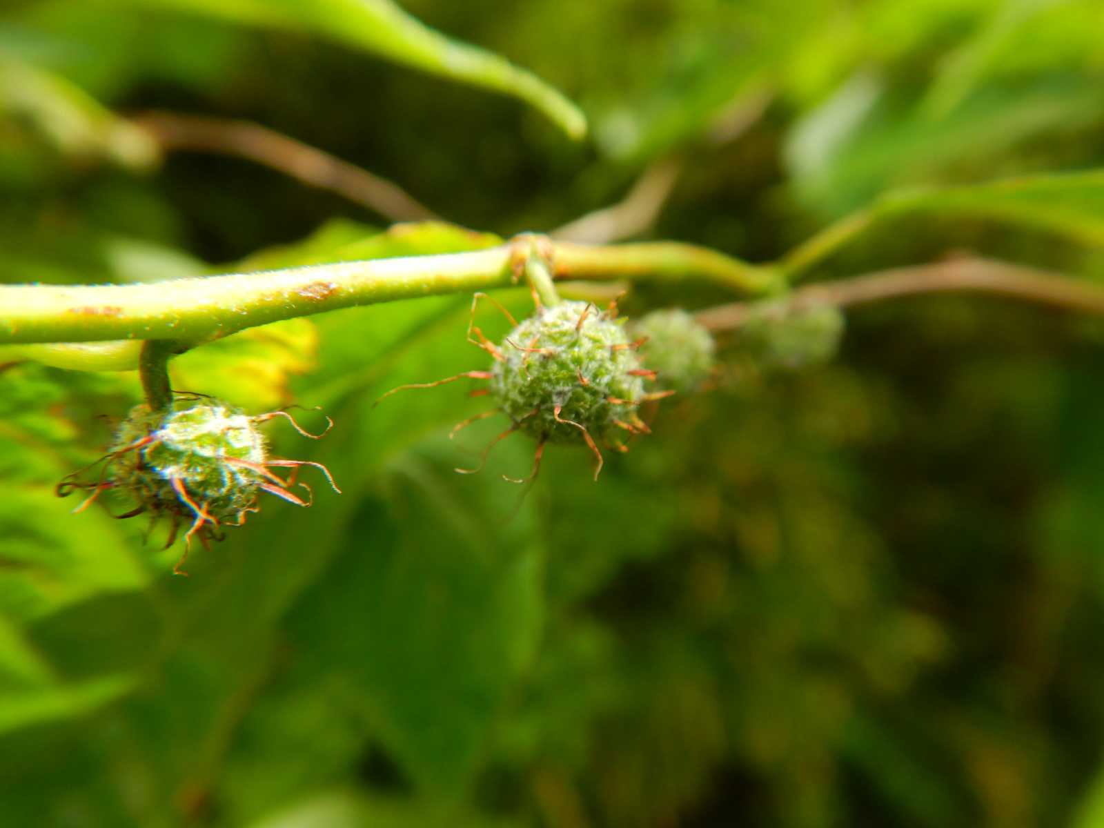 鳥が赤くなった実を食べたのでしょうか、誰かが植えたように何本か繁っています。桑の実と同様食べられますが、以前食べてみた時はあまり甘さは感じられませんでした。