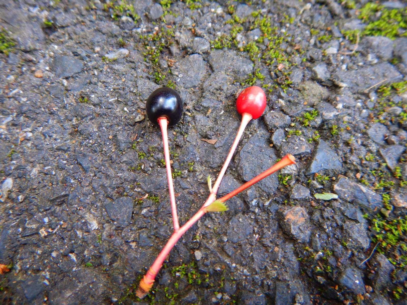 桜の実も熟れたものが落ちています。