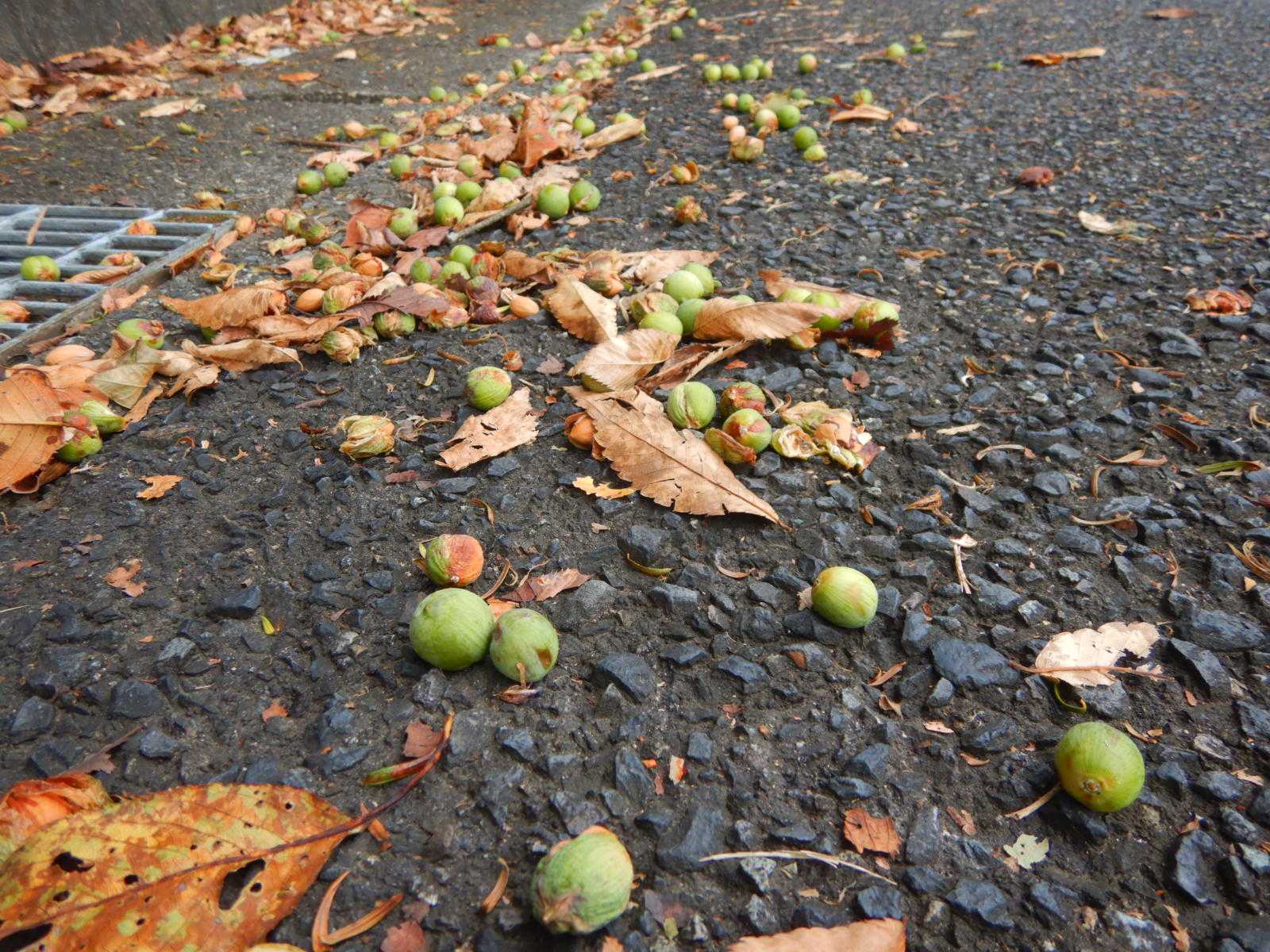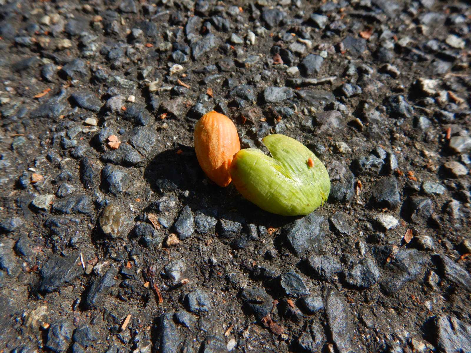 アーモンドに似た実には渋皮があり食べにくいので、拾う人はいないようです