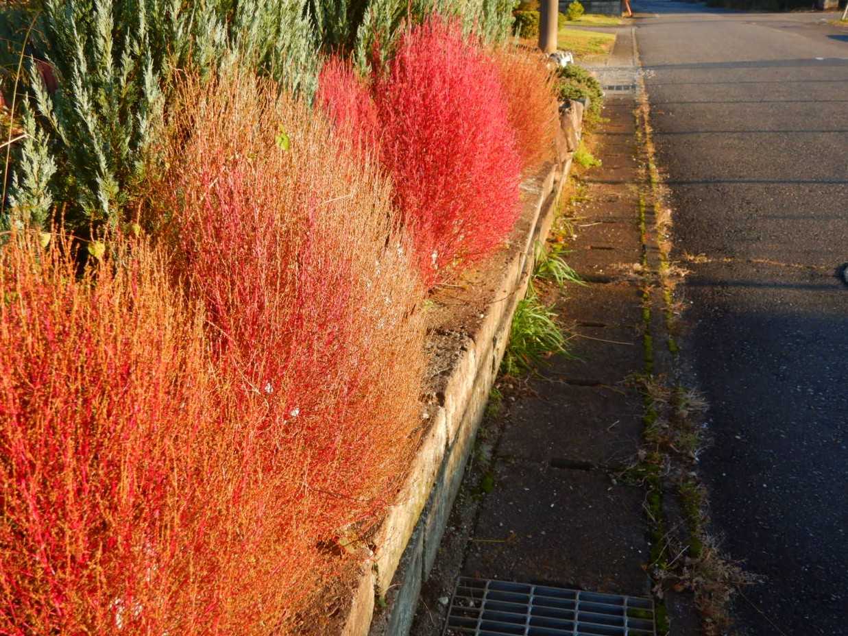 帰り道のコキアも色づいてきました。