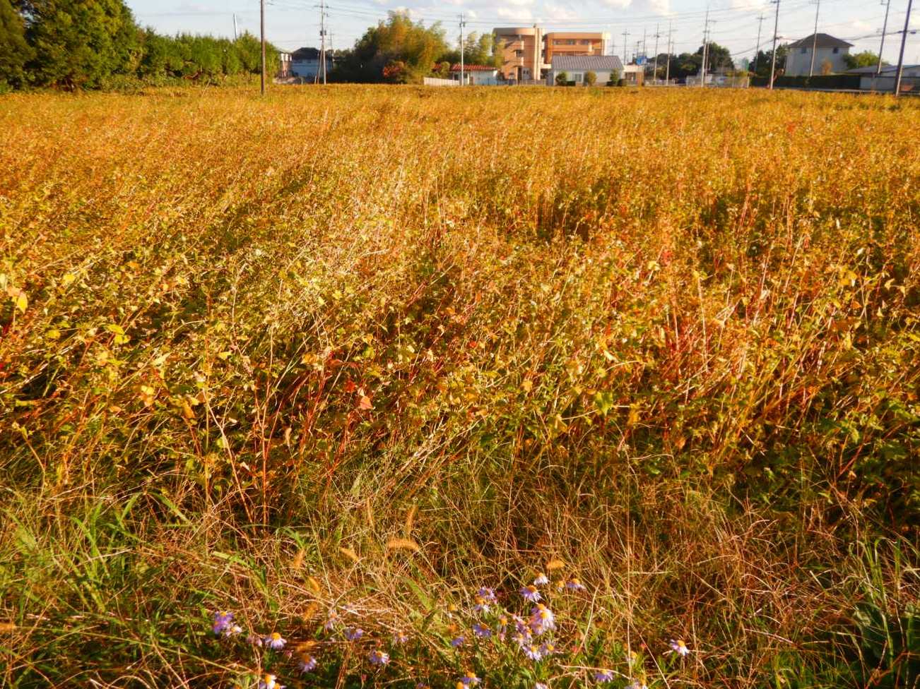 蕎麦の花が残っていたのはごく一部で、茶褐色の蕎麦畑は収穫が近いようです。