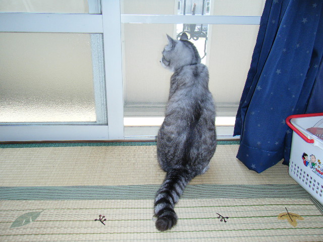 みなさん、こんにちわ。こちらは梅雨明け?!と思うくらいに晴天です。洗濯物もいっぺんに乾きます。さて今回のお話は哀愁漂う背中。もちろん主役はサスケ。。。と、いきたいのですが昨日も喧嘩してしまいました。誰と?!長男と私です。お風呂にはいって途中まではよかったのですが案の定ふてくされはじめて、お風呂のドアを閉めたままでてくる事がなかったのでつい足で蹴ってしまったらお風呂場の扉が割れてしまい、修理代に¥8,000!!ガラスではなくプラスチックだったのでけがもなかったのですがこのお金無い時期に出費が痛い。。。後から反省です。しかし私の怒りは収まらず主人の母が上の子を引き取りにきました。今、上の子はお婆ちゃん家です。下の子は眠っています。そして黄昏れるサスケです。
