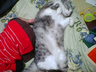 皆さん、お久しぶりです久し振りの更新ですなかなか日々ばたばたとしていてブロウ出来ませんでした気付ばもう2月・・・更新していない私のところに遊びにきて頂き本当に嬉しいです今下の子供は寝ていて上の子はDSをしているので時間が出来ましたサスケも一眠り中です私のお腹の赤ちゃんも9ヶ月に入りましたお腹の中で元気に動いています後少しです、、今まで順調に育ってきてくれた分元気に何事も無く産まれてきてほしいです上の子の時は切迫総流産/下のこの時はまだ2ヶ月始めの時に赤ちゃんが入っている袋がバナナ状態になって絶対安静の日々でした3人目の赤ちゃんは今の所何も無く育ってきているので本当に嬉しいです性別は聞いていません・・・2月の初めの土曜日は上の子の園内演奏会があり、今週の土曜日は市民会館で楽しい音楽祭!お腹もかなり辛いのにそんなに幼稚園行事が詰まっていて大変!しかも市民会館の方はビデオ撮影やカメラ撮影の禁止。なぜ???? カメラはフラッシュでわかるけれどビデオは?そしたら後から販売が・・・DVDで¥6000ちょっと! テープで¥5000ちょっと!って高くないですか?日曜日はバレンタインです皆さんは誰かにあげますか?私は主人と子供達と実家の父私のお婆ちゃんと主人の母と主人の弟と主人のお兄さん夫婦!主人のお兄さん夫婦は本当はあげたくないのですが一応・・・・皆さんの暖かいコメントやブログにももう少し落ち着いたら必ず遊びに行きますそれまで待っていて下さいねこれからも宜しくです