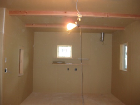 こんばんは~。何だか一気に気温が下がったせいか鼻水が止まりません。皆さんも気を付けて下さいね。とりあえず、足場が取れたご報告です。業者さんの車が邪魔ですが、外観はこんな感じです。そして、先日子供部屋の壁一面だけペンキを塗る為に、前日に養生をして、翌日仕上げて来ました。所要時間は2時間位(養生時間を除く)。色がちと分かりにくいですが、トイレのドアと同じ色です。アクセントのつもりで、一面だけ塗ったけど、部屋全部の壁を塗った方が良かったかなぁ。でも階段ほどではなかったけど、養生がメンドくさいんですよね~。ヾ(;´Д`A 養生さえなければ、楽しい作業なのにな…そうそう、製作中のビーズランプと施主支給品を除いて、照明も付きましたよ♪明日はおウチのクリーニングをして頂き来週の週末はいよいよ内覧会です。