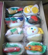 先月Meguyuさんから60000HITの記念に素敵なフェルトのサンドパンを頂きましたんもぉぉ、すっっっっごくかわいくて、おいしそうなんですしかもとっても丁寧に作られていて、一生大事にしまっておきたい位。でもサンドパンを見た途端、王子様が、スウィートカフェセットを持って来て、楽しそうにレストランをオープンさせちゃいましたでも、一緒に遊んでても楽しい~です。王子様はパンを二つ重ねて間にハンバーグやら、ウィンナーやら色々挟んで、大きなハンバーガーを作ってくれました。こんな風に遊んでいると、必ずチビ王子に邪魔されてしまいますだけどチビ王子が今一番おままごとにはまってますMeguyuさん、本当にありがとうございました大切に使わせて頂きますね。これからもどうぞ宜しくお願いします。coco