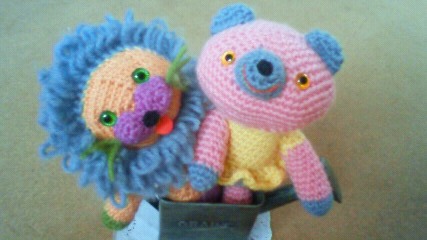 ● My Diary ●はや~い。もう2009年ですよ。毎日があっという間に過ぎて行くように思います。最近は、編み物とか、縫い物にハマっています^^コレは、姪っ子ちゃんのクリスマスプレゼントのつもりで編んでたのにお年玉になった、クマちゃんです。でもまだ渡していません…^^;隣は以前チビ王子の為に編んだライオンくん。今は、ヒマを見つけては、ヨーヨーキルトをチクチク作りためています。沢山たまったらカーテンにしよっかな。今年もどうぞ宜しくお願い致します。design by sa-ku-ra*