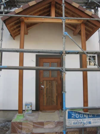 昨日から始まった外壁の本塗りが終わりました。左官屋さんとの打ち合わせで「もっとこう滑らかな感じで。」「コテ跡があまり残らない様に。」とか無理な注文ばかり言う度に何度も塗って見せてくれたんですが中々イメージが伝わらず、結局一度フラットに戻そうと壁を塗り直したその瞬間!!(☆ー゚)・‥…━━━★ピキューン!「そ、そ、それで!!」まさか、そんな無造作な作業を頼まれるとは思ってもいないでしょうから左官屋さんも苦笑いしていました。最終的に行き着いた塗り方は左官屋さん曰く「漆喰風。」だったみたいです。そんな簡単な言い回しがあったとは…(o_□_)oドテッ兎にも角にも下塗り、中塗り、本塗りと約1ヶ月かけて仕上げて下さった外壁をとくとご覧アレ!!!いやはや…と~っても分かりづらいですね。ちなみに塗料の缶の置いている辺りに家族の手形もあるんです。造作の玄関ドアも入っているのですが、私の撮影技術では何にも伝えられない。そーいえば、工務店さんのご好意で付けて下さったケーシング。付いた時から違和感があったんですが、壁が仕上がり、ドアが入ったら余計に取って付けたような存在に。どうにもこうにも気に入らなくて、今工務店さんに相談中。何とかなればいいけど…何だか愚痴っぽくなっちゃたので、残りの画像をサラーーーっとupしちゃいますね。キッチンと洗面のタイルが仕上がりました♪あとは設備が入るのを待つばかり。トイレのドアにはアンティークの表示錠を入れるのですが、ドアの枠部分をもう少し加工しなければいけないみたいで取り付けはもう少し後になりそうです。あとは、造作のリビングドアも出来上がっていたのですが、アンティークのステンドグラスが何と逆さに付いていたので、もう一度やり直しになり、工房へ帰って行きました。ここに来てどんどん形になっています。引渡しは12月中旬の予定です♪ヽ(▽`)ノワーイ♪ヽ(´▽`)ノワーイ♪ヽ( ´▽)ノ