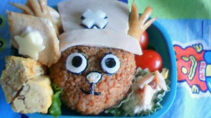 土曜日に運動会があり、月曜日は予備日のためお弁当でした大好きなチョッパーにしてみたけど、あのカワイさは表現できなかった…何だか変身後のチョッパーみたい coco