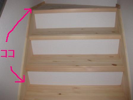 こんにちは。 大工仕事が終わり、内装も仕上がったので、階段の踏板の塗装をしました。こちらが塗装前の画像なのですが、失敗した点が二つばかり。本当は階段には幅木を付けるつもりはなかったんです。工務店の社長にも階段の写真を見せて「こんな風にして下さい。」とお願いしていたのに、棟梁には伝わっておらず…orz今更取り外すこともできずこのままになってしまいました。・゜・(つД`)・゜・ 棟梁にキチンと確認しておけばこんな事にはならなかったのに…それからもう一つの失敗点。白とこげ茶の組み合わせが大好きで、蹴込は白、踏板はこげ茶と決めていたので蹴込にクロスを使うと汚れるのは百も承知でクロスを貼ってもらい踏板を梁と同じで塗ったんですけどね~、塗る前のあの作業の煩わしさと言ったら全く…マスキングテープは大好きなので、あちこちにペタペタしちゃってますけど、養生で使うとなったら、やっぱり話は別ですね!!1段終わる度に階段の数を数えては「あ゛~、まだあんなにあるぅ。」(o`□´)oムキィィー!!!って何度止めようと思った事か。でもやっぱり白とこげ茶♪その思いだけで頑張って作業しましたよ~。 ほ~ら。イイ感じでしょ♪♪・・・・・・・・・・・・・・・幅木がなかったら…(*´д`)=эハァー当初の予定通り踏板だけを塗装したのですが、幅木も塗った方が良いと思います!?コレはコレでアリかなと思ったりもするのですが、一体感がないですよね~。やっぱり幅木が…←シツコイあとは、蹴込に撥ねまくった塗料を白のペンキで目立たなくして完成です。…で、本当にイイのか。