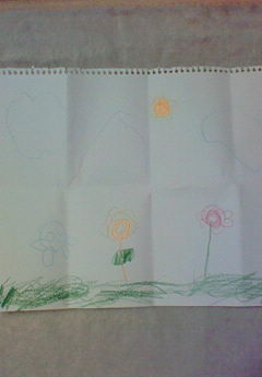余った封筒をテーブルの上に無造作に置いていたら、王子様が「Mちゃんにお手紙書きたいから紙ちょうだい。」 と封筒を持って来ました。スケッチブックの用紙を一枚破いて渡すと、なぜか封筒の大きさに折ってと言うので、理由を聞くと封筒サイズで絵が描きたいと。紙に大きく描いてから折り曲げても大丈夫だと説明すると、安心したのか、「Mちゃんの顔」 嬉しそうにお絵描きしていました。描き終えると、封筒にMちゃんと自分で書き、ハートのシールを貼って大事そうに胸に抱えていました。それから「幼稚園のおカバンに入れたよ。」 普段は自分で用意なんてしないのに、手紙を入れたカバンを見せてくれました。「明日はM菜ちゃんに書こう」 と張り切っていました。 coco