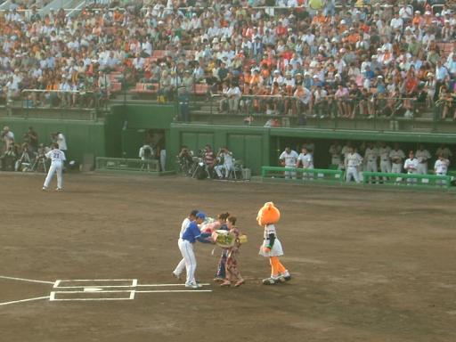 今回の一枚は試合前の花束贈呈の一コマです