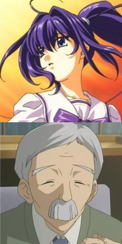 主人公岡崎朋也が通う光坂高校の教師で、担当教科は古文。物静かで好々爺な先生だが、かつては、現在のイメージからはとても想像出来ない様な熱血教師で、数々の武勇伝を持っている。現在でも、見かけ的には熱血的な感じは見えないが、生徒の事を真剣に考えており、校内で屈指の不良と言われた朋也や春原陽平の面倒をよく見て、2人を無事規定年数で卒業出来たのは、彼の尽力とも言える。朋也の卒業と共に定年を迎え、退職。元演劇部の顧問で、ヒロイン古河渚が演劇部を再建した際は、仁科りえの合唱部と顧問を兼任している。
