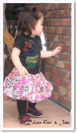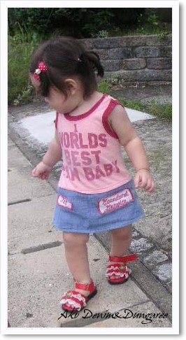 カタログ入荷で盛り上がってますね我が家は土曜日に取りに行く予定ですvanaは絵型の段階で気になるのがいっぱいあったのでグラの絵型待ちしていました~ちょうちん袖の洋服ムチャっぽくて気になるし耳付きパーカーはツボなので購入するかなぁ~でもサイズ感がわからないのがちょっと。。。今日聞いてこようかなぁ~vanaはむか~~しはアメカジが入った感じもあったけどレトロ系満載女の子ブランドになってからはチェックしなくなったんだよね~今回は娘もいるしレトロ系好きだし買っちゃいそうですあこ(1歳2ヶ月:75cm 9.5kg)ラブレボ バタフライT 80JAM ロリフリ 90ロリフリ90なのでかなりウエストがブカブカで落ちてきます(^^A腹側だけお腹ポッコリだからバックの画像は病院なので背景がなんだか微妙。。。ハイソックスはかせたら何か暑苦しくなっちゃったこのカッコウにあうサンダルないしとおもってバレエシューズにしたら靴下がいるしね・・・スカートさがってハイソックスがタイツに見えるしついでにお兄JAM&gothamgothamのパンツかなり気に入ってます♪病院の若~~い男の先生に大好評でした!!