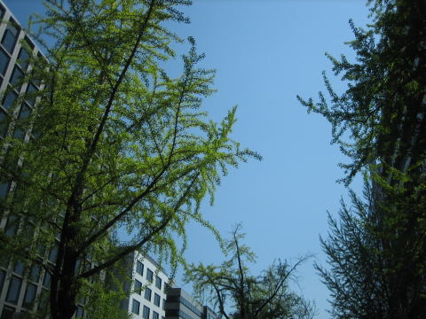 仕事先へ向かう途中あんまり奇麗だったので信号待ちでパチリ!ブルーにグリーン、、私の好きな色、、御堂筋はいまとっても奇麗だなぁ、、