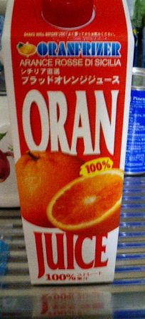 ブラッドピット様ではありません、、これです!↓(笑)シチリア産のブラッドオレンジジュース、、もぉ最高に美味しいんだな~~これが、、。最近「冷凍コロッケ」が問題となったikariスーパーで見つけました、、これも冷凍で販売されてるものだけど、、防カビ剤とか含有されてないかしら、、輸入ものってちょっと不安なんだけど、、これ1本700円、、なのでそうそう買わないしとうぜんがぶがぶ飲む事もないしま、どうってことないわよね(笑)ところで、、、オーシャンズ13、観に行かなくちゃ、、大好きな俳優が3人出演してるんだもん!豪華だわ~