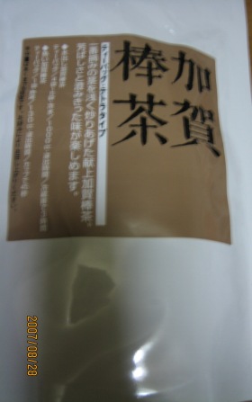 丸八製茶場の加賀棒茶最近これにはまってます、、会社で事務処理をしていた時突然背後から低~い声で「これ、あげよう、、」っと言われ振り向くと怖~いボスがニヤリと笑いながら立っていました、、「美味しいほうじ茶」っと手渡され「あ、あ、ありがとうございます、、」っと受取り、、怖いもの知らずの私でもさすがにこのボスだけはびびってしまう、、な、な、なんかしゃべらなくちゃ~っとあせりで、その後緊張のあまり咄嗟に出た言葉が「よく京都に行かれるのですか??」って、、あほちゃうか~~って話よね、、当然、ボスも「えっ??」って言うわよなぁ、、訳わからん突然の問いかけに困惑しながらも「京都はよく行きますよ、、」って言われたけど、、で、何故ここで私が京都と言ったか、、ですが実は以前にもボスから頂いたものがあってそれは大好きな京都満月の「阿闍梨餅 」でした、、で、ほうじ茶と聞けば「一保堂」支持者の私はすぐに京都が浮かんでしまうのです、、「阿闍梨餅 」「ほうじ茶」、、そっかぁ、、また京都のおみやげね~なんて早とちり、、「一保堂のほうじ茶が好きで、、」なんて話をするとすかさず「一保堂より美味しいよ!!」って、、負けず嫌いな親分さんさらに「それは金沢のお茶だけど、、」とも、、はぁぁぁぁぁ、、やってもうた~~手にしたお茶の加賀と言う文字を見て大赤面の私でした、、、こんなティーバッグ、、冷やして飲んでも美味しいよ、、本来、ほうじ茶はあまり好みじゃない息子だけど「このお茶美味しいなぁ~」って言ってました、、