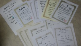 今季最後の水泳大会でした、、結果は100mバタフライで優勝50mフリーで2位でした、、もう2年目にもなると他中のメンバーとも顔馴染みになってきたようで特にフリーでは毎年大会新を更新するKくんと交流を深める事となった夏でした、、フリーでかならず息子の前に立ちはだかる最強ライバルKくん昨年は言葉を交わすこともなく気になりつつもお互い無視、、、今年も大会が迫る度息子の口から出るのはKくんの事、、「あいつはすごいからなぁ、、」「あいつには勝たれへんし、、」っとかなりひき気味の息子に言ってやりました、、「しゃべらないの??」「う~ん、、そういうタイプじゃないねんなぁ、、 なんか近寄りがたいってゆ~か、、」「あんたから声かけたらいいやん、、 仲良くなったらもっと緊張がほぐれるんじゃないの??」「う~ん、、そうかなぁ、、」で、どうやらそれを実行した息子、、帰宅するなりKくんの話で盛り上がってました、、「もうめっちゃ仲良くなったで~ で、来年は絶対にタイム抜くからな~って言ってん」ほ~らね、、、にわかに気持ちが向上してるじゃんっ!!たぶん中学卒業までは市内最速を争う関係だと思うよ!追いつけ!追い越せ!がんばっ!!ずいぶんと賞状が増えました、、朝礼時に校長先生から表彰されるそうです、、で、旦那が言いました、、「考えてみたら朝礼時に表彰されるなんてすごいよな~ 俺なんか朝礼時には毎回怒られとったわ、、『そこの奴ら立て~~~!!!』ってね、、その怒鳴り声を聞いてまわりはざわざわするし、、朝礼は中断されるし、、」って、、どうやら旦那を中心とする悪たれ軍団は毎回朝礼時にはヤンキー座りでしゃがみ込んでたらしい、、あほちゃうか~(笑)で、我が家の3人はみな同じ中学校出身となる訳だけど私はさすがに怒鳴られる事はなかったけどそれでも表彰なんてされた事ないもんね~1~2年の時の担任が大嫌いですごく反抗してたし、、このまま行くと息子が一番お利口さんって事だな、、