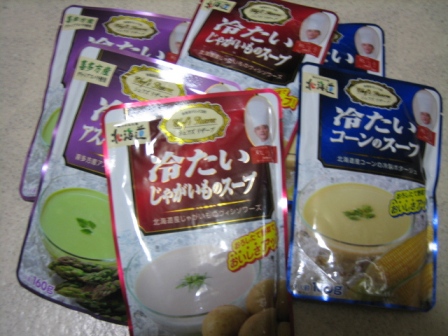 また届きました、、これは旦那がず~っと楽天市場で欠かすことなく購入している駿河亭のスープ前回までは温かいスープだったけど今回は冷たいスープを注文したみたい、、私が絶対起きてこない休日の朝の必需品なのか?今朝もバケット、スープ、目玉焼きを一人優雅に召し上がって行かれたみたい、、(笑)どうも我が家の旦那さんは「送料込み」と言う言葉に弱いらしい、、私が割高な買い物にちゃちゃを入れると必ず「送料込みやぞ~」っとお得感を強調するけどちっとも安いと思わないんだけど~~~(ーー;)で、旦那がかなり気に入ってるこのスープ達にいまだ手を付けた事がない私、、息子は容赦なく頂戴してますが(笑)
