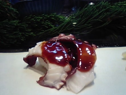 最近家族3人で外食~っと言えば今まで頻度の多かった中華や焼き肉に代わり「寿司屋」が断然人気!!しかも有難いことに回っていない(笑)考えてみたらその寿司屋のおやじさんとはずいぶんと古い付き合いなのだ、、私がまだ20歳になるかならない頃から顔見知りだった、、なぜなら毎日お店の前を通っていたし大学時代はその近所の喫茶店でバイトしてたこともあるし、、当時にしたらとても画期的な寿司屋デビューだったと思う、、もちろんのこと回転寿司なんてこの世に存在してなかったし「寿司」と言えばそれなりに高いものだった時代に1皿80円~デビューをしたお店なのだ、、とうぜんのことわんさわんさと客が詰めかけてかなり流行ってた、、それから数年経って、、地元でウロウロする事がなくなった私は疎遠になりなんとな~く耳にはいってきたのは高級寿司屋に変身したという良くない噂話、、たぶんバブリ―時代に欲が出ちゃったんだろうね、、旦那も同様、あんまりいいイメージがなかったらしくて、地元にいながら利用する事のないお店だったけどそれがちょっとしたきっかけで行ってみたら「おいおい、、美味いぞぉ~しかも安いっ!」って言い始め、、ならばとにわかに家族で通う事になったこの頃なのです、、とにかくネタがいいっ!なのにお値段もリーズナブル、、嬉しいね~~中でも私はここの蛸が大好き!!まぎれもなくモロッコやモーリタリア産でないことは歯ごたえと甘さで分かるあぁ美味しすぎて唸ってしまう~~最初から最後まで蛸一色でもOKかもしれないくらい私はここの蛸が好き!!アマダレも好き!!余談だけど関東の方にお聞きしたいのですが、、、関東ではアマダレ御法度なのでしょうか??江戸前のカウンターで「あのぉアマダレつけて下さい」って言うと激怒されると私の元カレが言ってたんですが~~たしかにアマダレの味が邪魔するというか素材の味をぶち壊す時もあるだろうな、、って気もするけどね、、続いて息子の大好物はこれ↓そして旦那のお気に入りはこれ↓鰻の肝だよ~ん、、これはほんと甘くて美味しいのよ~~イクラはすでに一貫ないし鰻の肝もずいぶんと減ってからの撮影となってしまいましたそうそうここのおやじさんは突然寿司台にタコの袋仔をちょこんとのっけてくれたり隣客がゲソの天ぷらを注文するとこれまた黙ってす~っと一番美味しい部分をサービスしてくれます(笑)