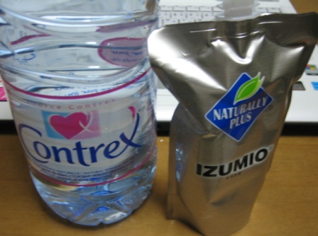 私、水はずっとこのコントレックスを愛飲しております、、その昔、このコントレックス、結構高価だったんですよね~有名なモデルがダイエットに効果あり!なんて言うから口コミで流行り出して、、で当時は1ケース4000円以上したものが最近ではなんと送料込1800円ほどで買えちゃうのです、、ダイエット効果はぜんぜん期待していないけど硬度が1551という超硬水、、カルシウムとマグネシウムがたっぷり摂れるのが嬉しいし中でもコントレックスはサルフェートの含有量がNo1!と言う事は、、デトックス効果大朝起き抜けから就寝前までガブ飲み状態(笑)初めて飲んだ時に「ま、不味い!!」と感じたけれど慣れればこの超硬水が結構快感だったりして、、さらには家族が絶対飲まないので超経済的だったりもします(笑)ちなみに旦那はNASAの水を愛飲しとります、、こちらは点滴にも使えると言うまた違った意味合いのこだわり水です、、私には何をもってNASAなのか理解出来ないしむしろ胡散臭さを感じておりますが、、(ーー;)で、画像コントレックスの横にあるのはいま噂の水素水、、、ちょっと理由あって多くは語れません、、また後日・・・