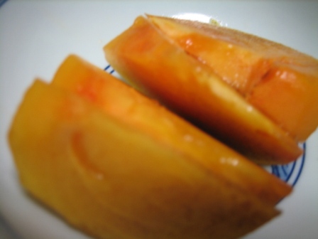 子供の頃や今よりもずっと若い頃は嫌いだったりあんまり好んで食べなかったけどここ数年ですごーく好きになった食べ物ってないですか??私、結構あるんです、、まずは豆類、、特に大豆やその加工品、、20代の頃なんて母が「美味しい♪」なんて言って飲んでた豆乳なんて臭いだけでアウトだったしとうぜん豆腐もあんまり食べた記憶がない、、それが今では大好き!それもつるんつるんで綺麗な絹こし豆腐ではなく大豆の香りプンプンのやや硬めの木綿豆腐ね!同じく臭いだけでアウトだった菊菜、、これがたまらなく美味いと思える今日この頃、、そして果物ではこれ↓柿の歯ごたえと甘みにはまってます、、ビタミンたっぷりだしね~☆