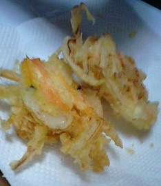 最近、息子のお気に入りが「ササミの大葉巻きフライ」から「かき揚げ」に変わりました、、「かき揚げ」をたらふく食べた日には「あぁ美味かった~~」っとご機嫌さんです、、でもってやっぱ若いからたらふく食べても全然平気なのよね~~こっちはかき揚げなんぞ胸やけが怖くてそういくつも食べられないんですけどぉぉ、、でも作る側としては正直なところ「ササミの大葉巻きフライ」より「かき揚げ」の方がず~っとず~っと楽でいいんだけどね~野菜室の掃除にもなるしね!今夜は人参、かぼちゃ、玉ねぎに海老でした。。。