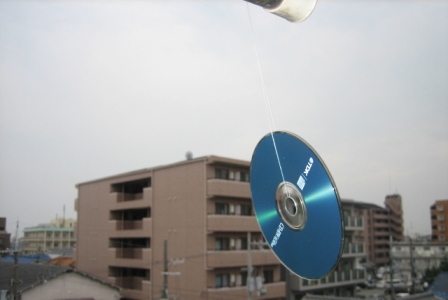 数日、風の強い日が続いていましたがベランダに出た際にカラス対策で取り付けていたCD-Rが消えている事に気付きました、、強風で吹っ飛ばされたのかテグスがぷっつり切れていました、、真下に落ちる事は物理上考えられないけど一応は1階の植え込みや駐車場、周辺の道端も探してみましたがCDもその残骸らしきものも発見出来ず、、まぁ落ちてるCD-Rを持ち帰り中身を覗く物好きな人はいないと思うけど、、実はマル秘ファイルが焼かれていました、、なんて訳ないよな~~追記~CD-Rと共にカラスの大群も消えました~静かで爽やかな朝が戻って来ました~ほっ。。。
