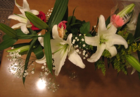 今日は母の日2人の母に贈るお花をアレンジしてみました~カサブランカを主体に左はバラバージョン右はポピーバージョンさてどちらを母に?どちらをグランマに?やっぱバラが母でポピーがグランマかな?な~んて思案しながらラッピングしている時に母がやって来ました、、「丁度良かった!どっちがい~い?」っと聞くと「あらぁ~綺麗ね~どっちがいいかしら~」っと眺めた後に「バラを戴こうかしら、、いいの?」っとグランマよりも先に選択権を得た事を気遣う母、、「うん、そのつもりだったし」と私、、グランマには息子のバイト先のスイーツを一緒に届けました、、母の日と言っても「カーネーション」はお二人には不要、、だってあんまり好みじゃないらしいし、、それよりも「家中、カサブランカの香りで一杯よ」っと声を揃えたように喜んでくれました、、カサブランカは結構当たり外れがあるんだけど今回のはかなり大きくて香りもすごくいいものでした、、実はこのお花たち、、スーパーで調達なり(笑)そして次は息子から私へのプレゼントで~すまだありますハイドロカルチャーのクロトンなかなか私のツボを押さえたgoodチョイスなり~ありがとう