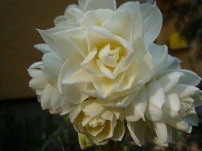 昨年秋、処分販売されていたので、つい購入してしまった水仙。処分価格でも、普通の水仙よりずっと高かったわ。お花の一つ一つは、とっても小さく、100円玉より小さいかな?でも、固まって咲いているので、寂しくありません。一本の茎に6個前後、お花を付けてます。一つの球根から三本花茎が出ました。咲き方がバラみたいで可愛いです。名前、何ていうのかなぁ・・・。「欲しい!!」と思って買った訳ではないので、忘れてしまいました。咲いたら、結構可愛くて、愛着が湧いてきました。どなたか、ご存知ないですかぁ?!この八重咲きムスカリも処分球根でした~。フランシーヌオースティン(イングリッシュローズ)の花壇の前面に植えました。数が少なくて、ちょっと寂しいかも★でも、普通のムスカリよりボリュームがあって、1個、1個に存在感があります。来年、増えたらいいなぁ。↓私はいつもこの液肥を使ってま~す♪【送料無料/代引き・決済手数料無料/メーカー直販】HB101(35cc)今から始めるガーデニングに! 安全・無害で減農薬栽培や有機栽培にも!使い方カンタン【送料無料/代引き・決済手数料無料/メーカー直販】 HB-101 (35cc)翌営業日発送可能!