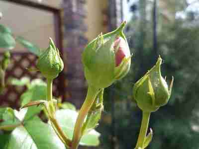 今年早春に届いた大苗のジャネット。イングリッシュローズです。きれいなアプリコット色になってくれるといいなぁ、と思い。鉢植えのまま、どの日当たりがいいのか研究しようと思ってます。葉っぱもちょっと他のとは違って、優しい感じです。赤みが多いかな?購入時、葉もなかった大苗でしたが、待ちに待った蕾があがってきました♪イングリッシュローズは、アブラムシに強いのか?!ニ、三匹見つけただけで、あんまりついていない様子。この分だと、この蕾は綺麗に花開いてくれるかも?!ただ、水切れが早いので、鉢増ししないとなぁ・・・。水切れで、さようなら~、しない様気を付けなきゃ★こちらはソンブレイユ。ソンブロイユとも言われていますが、カタカナ読みするとちょっと違ってくるのでしょうね。私は購入した名前で呼んでいます。これは2008年早春、大苗で購入。花壇に地植えして、アーチに登らせています。かなりのトゲの持ち主で誘引泣かせでした・・・。その苦労のかいあって、今年はものすごい数の蕾をつけてます。ただ、アブラムシが非常に多くて、ダメになってしまうものもありそうです。ホント、いい香りがするのよ~♪とっても癒されます。アーチがこのバラで埋め尽くされるのが楽しみです!!これはピエール・ド・ロンサール。まだまだ、小さい蕾です。これも2008年早春に大苗で購入したもの。中庭(小庭)に地植えしてあります。隣の空き地との境界線のラティスに誘引してあります。空き地側の方が日当たりがいいので、そっちに顔を出してる蕾が沢山★中心より左側のツルには50個くらい蕾を確認♪このバラはチュウレンジバチが付くので、よくよく観察しておかないと!凸凹のワンツースペースになっていますから、薬剤一切使ってないので、バラの花びら使ってお茶とか作れるかも?!他のバラは蕾の確認ができないわ~。まだまだなのか、不作なのか。ミニバラにちょっと見えかかったのがあるけど。アブラムシの餌食になってて見苦しいので。。。毎日が虫との戦いです。バラが咲くまで、巡回頑張りマ~ス。↓ソンブレイユってこんなバラ。ここで買いました。鉢バラは、お花か蕾付きで届きます。すぐ楽しみたい人向きですよね。通常売られているモノより大きくて、後々、育ちが良いです。*つるバラ*ソンブレイユ スリット鉢・鉢バラ