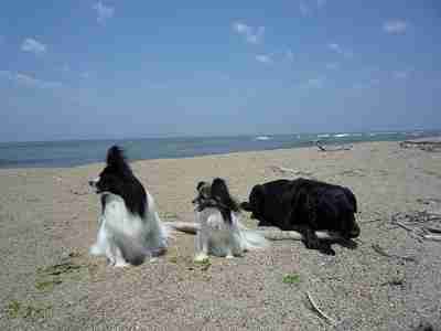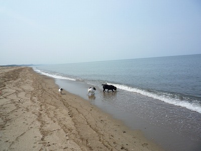 「やっぱり海岸のお散歩だよ~!!」三日、雨が続いて。おうちの中でおとなしくしているのも飽きてきた頃。曇ってるけど、大好きな海岸散歩へやってきた凸凹。走って、走って。疲れて、伏せてる あっしゅ。疲れて、止まってる ちゃーむ。やっぱり、あっしゅの方が疲れやすいわ・・・。海岸のお散歩は疲れるけど。でも、でも、最高に楽しいのだぁ♪ホリホリして、お鼻に砂をつけて、幸せをかみしめる あっしゅくんなのでした。今日のお洋服はずいぶん前にここで買ったの。立体裁断で動きやすいお洋服!近々セール開催予定♪↓一枚千円くらいで買えちゃったりするから、お散歩用に買いたいかも~。Dog Peace