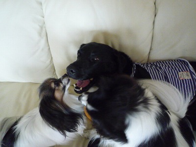 黒ラブのナナが凸凹のおうちに遊びにきてくれました。あっしゅはナナが大好き。好き好き攻撃してたら、ちゃーむも混じって来ました。ちゃーむも、ナナが大好きなのね♪でも、あっしゅは、もっとナナが大好きなのよ~!!「ボクのナナ~♪」ご満悦のあっしゅに対して、ナナは前足を踏まれ困り顔★毎度、面白おかしなワンコたち。毎日の様に会ってるのに、新鮮な反応だわ~。↓ぺたんこになるフード&水入れ!!こんな面白便利グッズって、ちょっと買ってみたくなっちゃうのよネ~。コンパクト!ポコッと広げてフードボウル!!ぺたんこボウル Sサイズ【フードボウル】【アウトドアグッズ】【携帯水入れ】