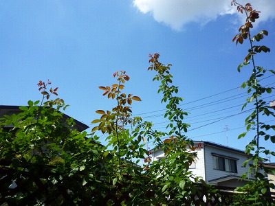 我家のピエール・ドゥ・ロンサールの現在の様子。可憐な様子などちっともない、暴れん坊のピエールになってます。昨日UPした色鉛筆画や画像からは想像できないでしょう??もうすこしで二階の窓に届きそう。去年はこの高さで枝を寝せちゃって、枝分かれしちゃったから。今年は秋までまっすぐ伸ばします!すっごく格好悪いんですが、春の満開の姿を想像して乗り切ります。最近、めっきり朝晩、涼しくなって。ちゃーむはお洋服&御布団が恋しい季節になってきました。朝昼の気温さが15度くらいあって。風邪などひかない様、気をつけなくっちゃ~。息子の学校でインフルで学級閉鎖になったりしてるので。いよいよか~、なんて半端な覚悟決めてますぅ。↓玄関にこんなの置いても~。家族全員がシュシュッとやってくれなきゃ、意味がない~?!【新型ウィルス対策に】人にやさしい除菌・消臭剤 ハサップアクアミスト 500ml 新型ウィルスが15秒で不活化(日本食品分析センター調べ 第209060459-001号)