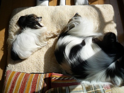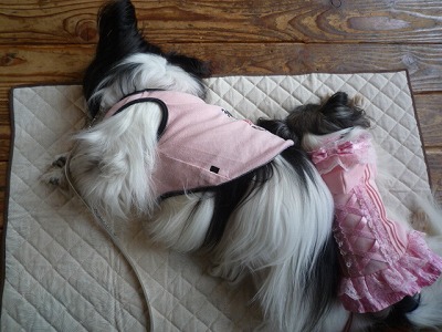 今日は躾教室へ行ってきたよ♪久し振りにカメラを持って行ったので、パチリと一枚。あっしゅ、完全に寝ています。ちゃーむも寄り添って眠ってます。カフェではじっとしている事。それがワンコたちのお勉強。飼主は犬の行動学をお勉強。ワンコと飼主、それぞれ違うことをしながら、お互いのお勉強をしてきました。躾教室へ行くと。もっと頑張らなくっちゃ~って、他のおりこうさんたちを見て思うけど。我家は我家のペースで、着実に進歩していこう~と心に誓うのでした。寒くなってきたので、ちゃーむが潜れるベッドを探してこんなの見つけました!かわいい~♪どの柄にしようか、悩むところです。ちゃーむにはピンクが似合う??部屋に合うのは赤か黄色なんだけどなぁ・・・。フルーツ村のペットたちシリーズがベッドになりました。◎【送料無料】もぐっておやすみ(ペッツルート)