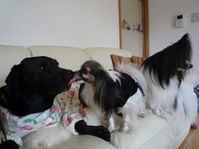 我家のちゃーむにペロペロ攻撃されているのは黒ラブのナナ。久々にナナが遊びにきてくれて、大興奮なのだ~♪もっとアップで見てみましょう。こんな感じで高速で舌を動かしてます。ナナ、迷惑だねぇ・・・。今日は、ダックスの華も遊びにきてくれたよ♪飼主はランチを作って、久々の会話に大盛り上がり。(ランチの画像、撮らなかったわ、ナナママのブログにあるかな~?!)ワンズは、ほとんどの時間を、だま~って寝てました。今日は、お米の話題で盛り上がり。国産の雑穀米の話など出て。私のオススメを紹介しま~す♪23日までのお試しセールだからお早めにお試しを~!!○いよいよクライマックスシリーズ!≪イーグルスセール≫雑穀協会公認エキスパートが厳選した、おいしさと栄養の黄金比率!【送料無料】【メール便】国産100%!香るブレンド雑穀【100g】⇒お一人様1個限定!