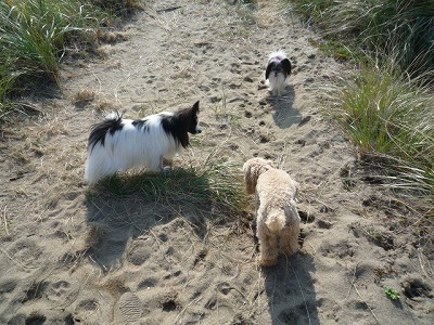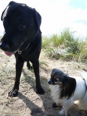 海へお散歩へ行ったよ♪もう、お散歩が終わって帰る途中のりゅうくんに出会って、パチリと撮ってみたら。りゅうくんの手前にいるのに、随分ちゃーむが小さく見える~。あっしゅは久しぶりのまるこちゃんとご挨拶??(画像がない★)海へ向かうと。「入ってもいい?」と聞くあっしゅ。「いいよ~♪(今日はシャンプーだ!!)」とママ。気温17度。おうちでは寒くて震えているちゃーむまで、海に入ってる~。海を見ると、条件反射の様に入ってしまう凸凹なのでした・・・。おうちへ帰って凸凹をシャンプー!今日は新しく買ったマイナスイオン付のドライヤーで乾かしたよ♪二、三日私も使ったけど、風力良し、髪もサラサラしっとり。凸凹の仕上がりも、良かったよ~♪いつもなら毛が広がって、タヌキみたいになるのに、今日はならなかった!ただ、業務用なので、重いのが難点・・・。ちょっと高価だったけど、これは買って良かった♪【即納・送料無料!お楽しみプレゼント付!】nobby ノビー マイナスイオン ヘアードライヤーNB3000 【ホワイト】★早いもの勝ち♪