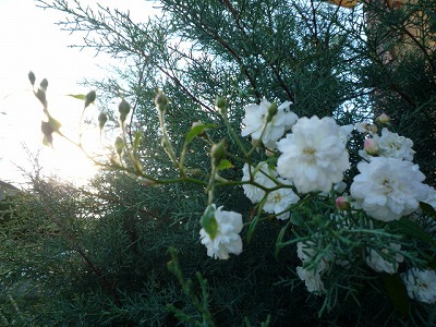 イングリッシュローズのフランシーヌ・オースチン。私の一番好きなバラ。(一番がいっぱいあるんだけど☆)秋になって、ちまちま、咲いております。隣に植えてあるコニファーのブルーアイスが、思いもかけず、巨大化してしまったのですが、負けずに、そこを登る様に咲いています。春にお友達のおうちで、アリスタ・ステラグレイを見て、「これ、カワイィィイイ♪」って思ったのですが。どうやら、フランシーヌはアリちゃんの血を引いていたみたい。バラの好みってやっぱり、あるのね~。オールドローズのソンブレイユ。相変わらずツルバラらしく、元気に成長しながら花を付け続けています。秋のバラが美しいのは、秋の空が気持ちよく澄んでいるからなのかな、なんて思いながら。クンクン。いい香り♪白いバラ、好きです。土地があったら沢山植えたいよぉ~~~。毎年、少しずつバラが増えてって。鉢の管理ができなくて。花に申し訳ないので、今年は買いません!!って思うけど~。ついつい、ポチッとネットでショッピングしてしまうのでした★私の持ってるバラで唯一、父母が欲しいと言ったバラ↓※フランシーヌオースティン (高ER白) 国産苗 大苗 6号鉢植え品 ★※1月末までにお届けの予約大苗