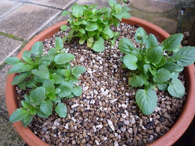 ダブルデッカー、3鉢作りました。一軒家に引っ越してから毎年作っていますが。植えた数だけ咲いてくれないチューリップの球根に、そろそろ作るのをやめようかなぁ・・・と思いながら。春に咲き誇る姿を忘れられず、今年も作ってしまいました。今年はチューリップに期待せず、ビオラメイン(笑)ジャムの空き瓶には、苗を育てるため摘みとったビオラが美しい♪一鉢にビオラを3株ずつ。三色使用。一鉢に一色ずつ。あとは、丈夫で安い普通のチューリップを五個ずつ買って、2鉢に植え込んで。あっという間に完成~!!なんか、チューリップの球根は向きがあって、きちんと並べるといいと聞いたことがあるけど~★作り方は適当ですっ。少しだけ時間をかけたのは。上の画像の黒いビオラの鉢。ブラックジャックという名のビオラの鉢には、ミニチューリップのペルシャンパールを10コ植え込みました。その鉢には去年咲いたムスカリも端に植え込んでみたので。トリプルデッカー?!全部、きちんと咲いてくれたら、さぞ、美しいことでしょう!!今年のビオラはこれ↓ここのショップは植え込んだものも送料無料1000円とかあったりするので。植え込みの面倒な人にもオススメです♪【送料無料】自社栽培の元気なビオラを関西風土で作りました。1株あたり約58円!!!□関風&ビオラ24株セット
