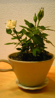 白いミニバラ。とっても小さな鉢に入って。花・蕾・茎がうなだれていたのを息子が救出してきました。(どこで入手したのやら?!)こんな時期に蕾のついたミニバラ、しかも蕾はうなだれて・・・。ママにどうしろ、というんだ~。とりあえず、鉢から抜いてみましょうか、とひっこ抜いたら。すぽっと取れた。案外根はしっかり張っている。先日、お土産にもらった益子焼のカップ型の鉢にぴったりサイズ♪もしかしたら、鉢増しして、水をあげれば生き返るかな~??と。ためしたら、蕾はぴんぴん♪元気になりました。鉢も花も、幸せそう♪♪道具は使ってなんぼ、よね~。とりあえず、峠はこした。でも。バラはお日様のもとで育てるべきかと思うけど。温室育ちのこの子をいきなり東北の外気にあててもいいものかどうか・・・。う~ん。一時しのぎで、救えた命。花後、はたして真の意味で救出できるのか?!ママ、ミニバラとは相性が悪いでなぁ。。。来春、生きて姿をお見せできるでしょうか?!乞うご期待。外の鉢バラたちの土替えのシーズンがやってきます。今年はどこの土を買おうかな~。限定100セットで送料無料、これ買ってみようかな~。↓限定100セット! ×2袋で全国送料無料!!【×2袋】「バラの家 培養土」(バラの土)14リットル×2袋なんと送料無料です!!