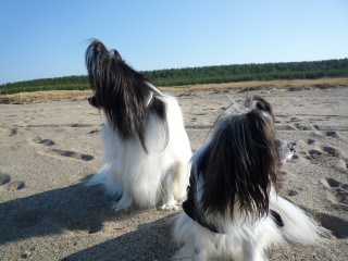 今日はしつけ教室へ行ってきました。秋田市新屋地区は快晴!躾日和でしたよ♪この写真は 最後に残っていた方々にお願いして撮影させていただきました♪向かって右からラブラドール×ゴールデンレトリバーのもこちゃん。和犬ミックスのコロンくん。ポメラニアンのミコちゃん。ゴールデンレトリバーのマーレちゃん。ミニチュアシュナウザーのそらちゃん。ミニチュアダックスの華ちゃん。パピヨンのちゃーむ、あっしゅ。そして、ラブラドールレトリバーのナナ。今日は見学に来てたコが二頭。パピヨンのヒメちゃんとミックスの???くん。???くん、ごめ~ん。名前が難しくて忘れてしまったわ★写真はパピヨンのヒメちゃん。ヒメちゃんには、ちゃーむがお姉さんぶって、挨拶に。風で、毛がもちゃもちゃ~~★ほんとは美人のふたりです♪仲良しになれたらいいね♪習い事はワンコだけではなく、息子もやってます。週に四回から五回プールに通っているので。バスタオルの洗濯が大変。これからの季節、ガーゼバスタオルは乾きが早くて助かります。ナチュラルカラーばかりでどれもステキで選ぶの悩んじゃいました。結局、ビスタチオ色のセット、買ってみました~!↓シンプル無地にハンコプリントがおしゃれなタオルお試し価格です!表はガーゼ、裏はパイルのさらふわタッチ【送料無料】ナチュラルガーゼお試し同色3点セット