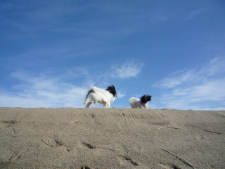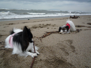 寒い海岸で、何をしているかというと。ひたすら木をカジカジ、ペッペッ・・・。両手で挟んでかじります。止めないと、持っている木が小さくなるまでやってます。黙って見てるママはとっても寒いんです。早く、ウォーキングしようよ~~~。って、声をかけようと思ってたら。ポツポツ、小雨が降ってきちゃったよぉ。もう帰ろうか~と思ったら。あっしゅが、ナナを発見!!って。このあと、ワンズは雨なんかお構いなしで楽しく散歩を続行したのでしたぁ。~~~~~~~~~~~~~~~~~~~~~~~~~~~~~~~~~~~~~~~雨や雪、耳毛の長いパピヨンは下を向くと耳毛がどろどろ~★雪が降ると、雪玉がぶらさがって、大変な事態に。。。こんな撥水生地でスヌードを作ったら、耳毛につく汚れや雪玉、カバーできるかな↓鮮やかカラーに大きなドット!レインコートやエコバッグにどうぞ♪撥水加工生地 【ドット】
