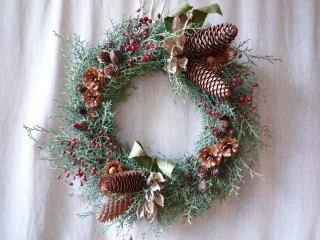 玄関のドアに飾るために、大きめサイズのフレッシュリースを制作。直径35センチを超えました。ベースはアケビのツルだと思うんだけど。庭のブルーアイスの葉をカットしてぐるっと一周貼り付けて。青森ひば?ドイツトウヒ?の長い松ぼっくりと。小さくて可愛い唐松ぼっくりと。普通の松ぼっくりと。どんぐりと~、ローズヒップと~、月桂樹と~、珍しいところで、桐の実かな??あとは不明なのが一種類。長い松の傍に付けたカサカサするコレ、なんでしょう?↓珍しくゴテゴテと貼り付けてみましたよ~。いつも○○だけリースが好きで、あんまり貼り付けたりしないんだけど。(ローズヒップだけ、とか。トウガラシだけ、とか。)クリスマスリースはライトアップに負けないくらい派手にしようと思って。あとで、リボンをつけてあげなくっちゃ。木の実って、かわいいよね~♪適当に貼っても、いい感じになってくれてうれしいわ。メイドイン秋田のリースです。秋田産ばっかりでここまで作れます。しかも材料はタダ。あ、グルーガン用のグルーはかなり使ったけど~。安い、安い!!材料は、凸凹のお散歩に出た時に採集するんだけど。移動時間の飲み物は、味気ない缶コーヒーではなく、こんなのがあったらいいなぁ!寒いこの時期、暖かいドリップコーヒー、ますます美味しく感じます♪【限定セール】コーヒーメーカーボトル「GAMAGA」【楽天最安値に挑戦】
