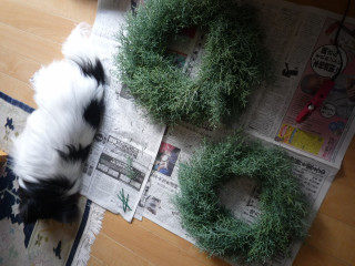 45センチ越え、リース完成!自宅用です。玄関のドアに飾ってみました。自宅用だから気合いを入れず、作ったら。ちょいとバランスが悪い・・・。でっかい松ぼっくりが、下がり気味だわ★直すの、面倒だなぁ・・・。離れてみるとこんな感じ。もっと上につけなきゃ、バランス悪いですね★隣にある、ローズヒップのリースも外した方がいいかな~。リースに使ったコニファー ブルーアイスにイルミの飾り付けをしました。黄色系で、なかなか綺麗に輝いています♪室内には、こんなスノーマン↓が欲しい私です。クリスマス室内イルミネーション ベリーライト クラフトスノーマン~~~~~~~~~~~~~~~~~~~~~~~~~~~~今日はちゃーむの誕生日!!四歳になりました。生鮭をもらったので、今日はお魚でお祝いです(笑)喜んで食べてくれるはず~。あっしゅの時は忘れていたけれど。今日はちゃんと思い出しました~。誕生日のプレゼント、何がいいかな~~~悩んでいるママなのでした。