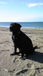 海岸で井戸端会議を始めたママたちの傍らで。お座りして待っているラブラドールレトリバーのナナ。穏やかな、晴天の日・・・って感じでしょう?そのすぐ隣でお座りしていたパピヨンのあっしゅ。晴天だけれど、風が吹いているのを見てとれますよね。思わず、画像を見比べちゃいました(笑)いいお天気が二日も続きました。秋晴れを楽しめるのは後どのくらいなのでしょうか??庭仕事、冬が始まる前に片付けなくてはなりません~。頑張ると肩がこっちゃうので、こんなのが欲しいです↓【送料無料】 セラミックボディウォーマー 冷え対策にはコレ!レンジで簡単ボディウォーマー!