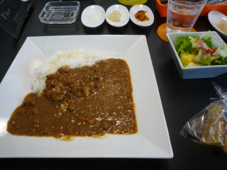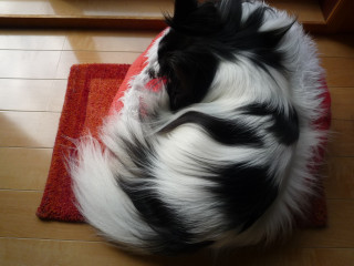 こちらが、本日 cafe bone でいただいたワンコインランチ。カレーにココナッツ、らっきょ、福神漬が付き。サラダとワンコのおやつ。食後にフレーバーコーヒーがついてました。大食漢の私は、×2 でも食べれる感じでしたが、ダイエットを気にする若いコたちにはちょうど良い量なんだろうな~。あっしゅとちゃーむは、またですか・・・って感じで。ママの左サイド足元で、じ~っと静かにしておりました。なかなか明るくてステキなお店でした。散歩へ行く海岸の傍なので、またお邪魔したいわ~。次は「大盛りある??」って聞かなくちゃ(笑)寒がりのちゃーむ。途中で「寒いよ、寒いよ」って訴えました。フリース敷いただけじゃ寒いのね・・・。↓このくらい厚いカフェマットがないと、小型犬には寒い季節なのかもしれませんね。上質なフェイクファーのカフェマットワンちゃん猫ちゃんに心地よいひとときを…ぬくぬくファーマット