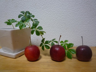 「リースの飾りにどう?」と、ちっちゃいリンゴをいただいてきました♪めっちゃ、かわいい!よく見かける姫リンゴはまずくて食べられないけど、コレは普通に食べられるらしいです。シュガーパインの葉っぱと比べると、サイズがわかるかな?もっとわかりやすく、フジと並べてみました。ちびっこリンゴの可愛らしさが伝わるでしょうか~??枝が細長いのが、何ともいえず、かわいい!!名前、何て言うんだろう?スーパーでは見たことがありません。いつか、リンゴ狩りに行った時に一度だけ見たことあるんだけどなぁ。。。誰か、名前を知ってたら教えてください!!こちらのクラブアップル↓かわいいけれど、違うみたいだし・・・。クラブアップルの苗木コレクションMalus